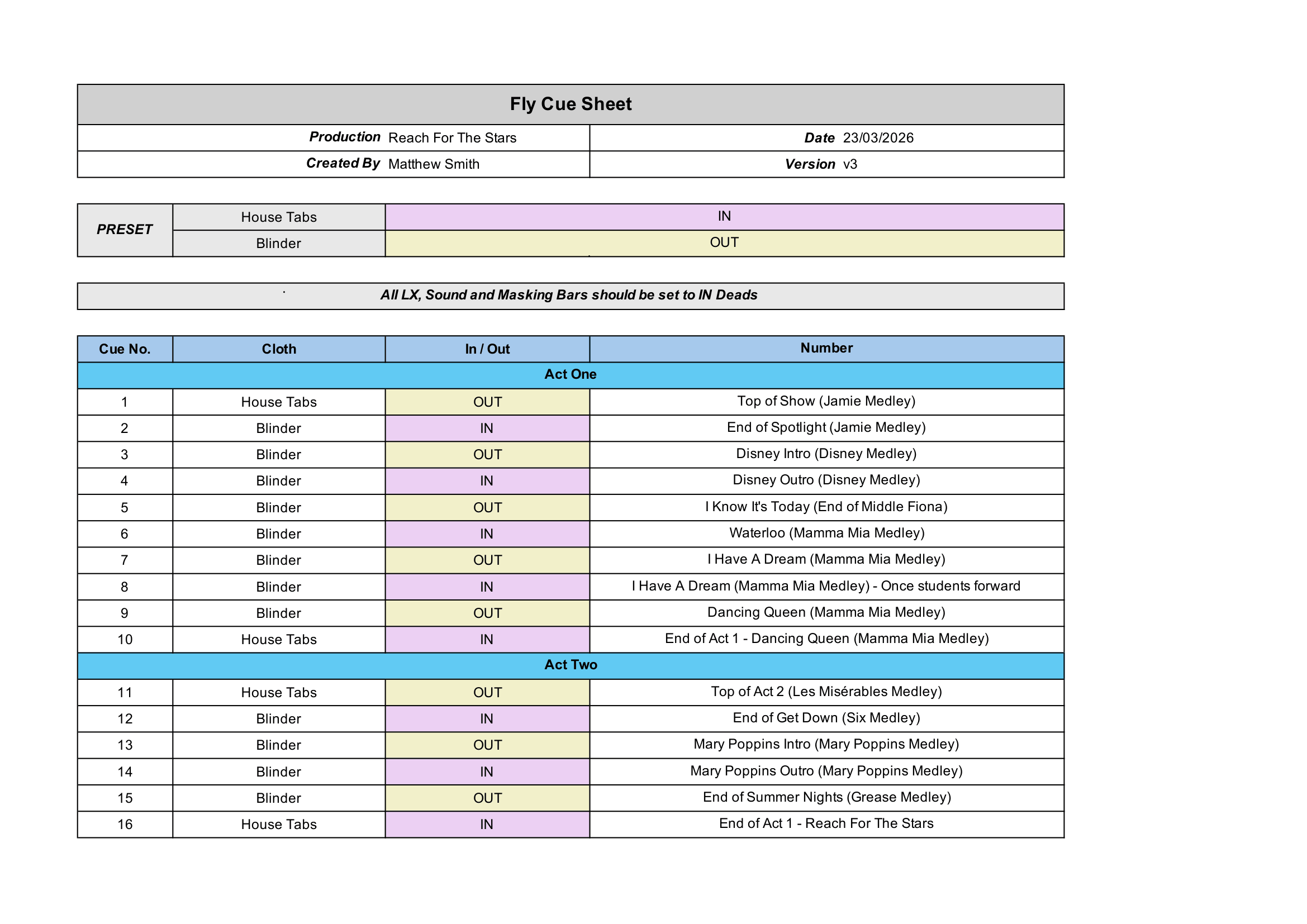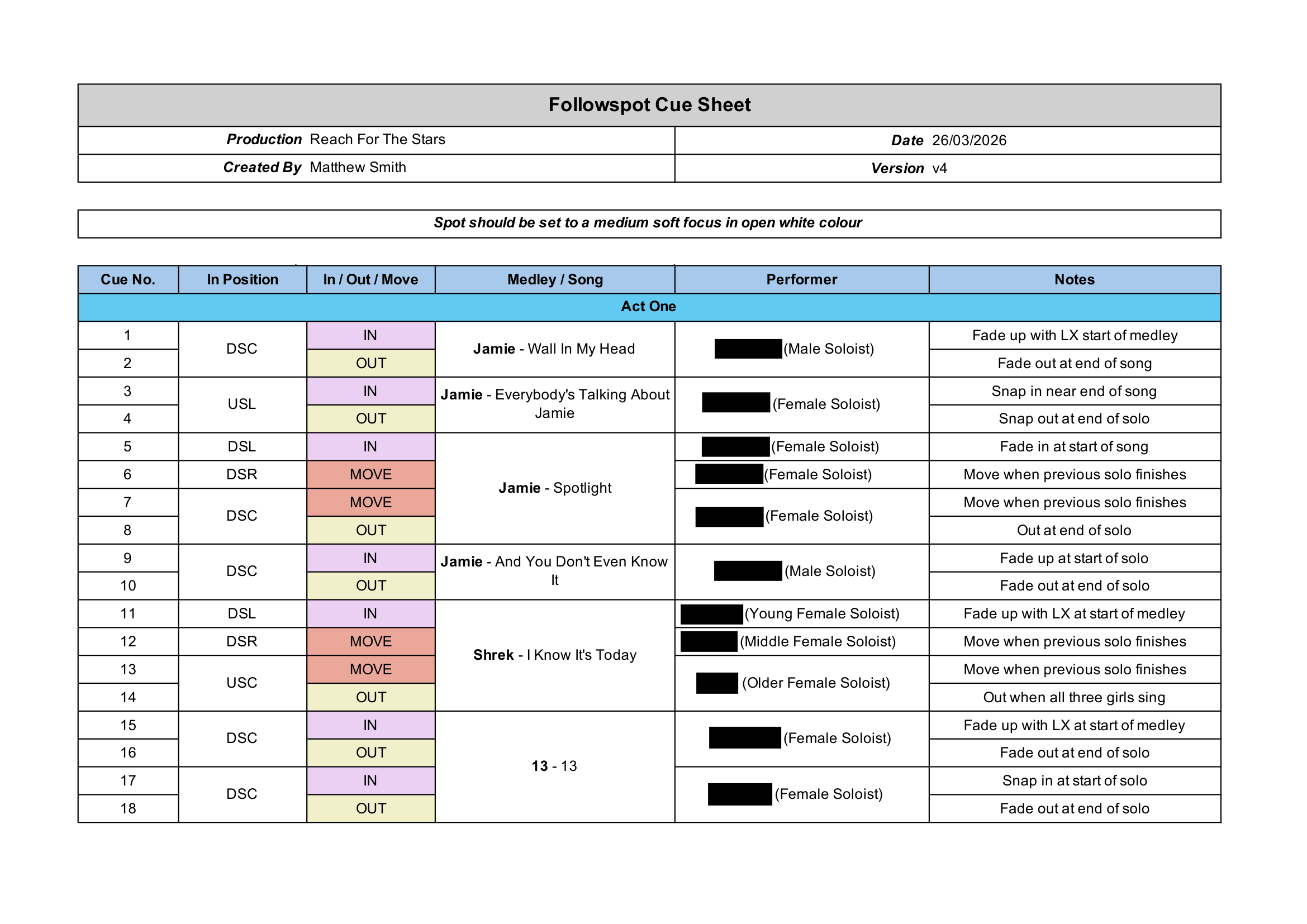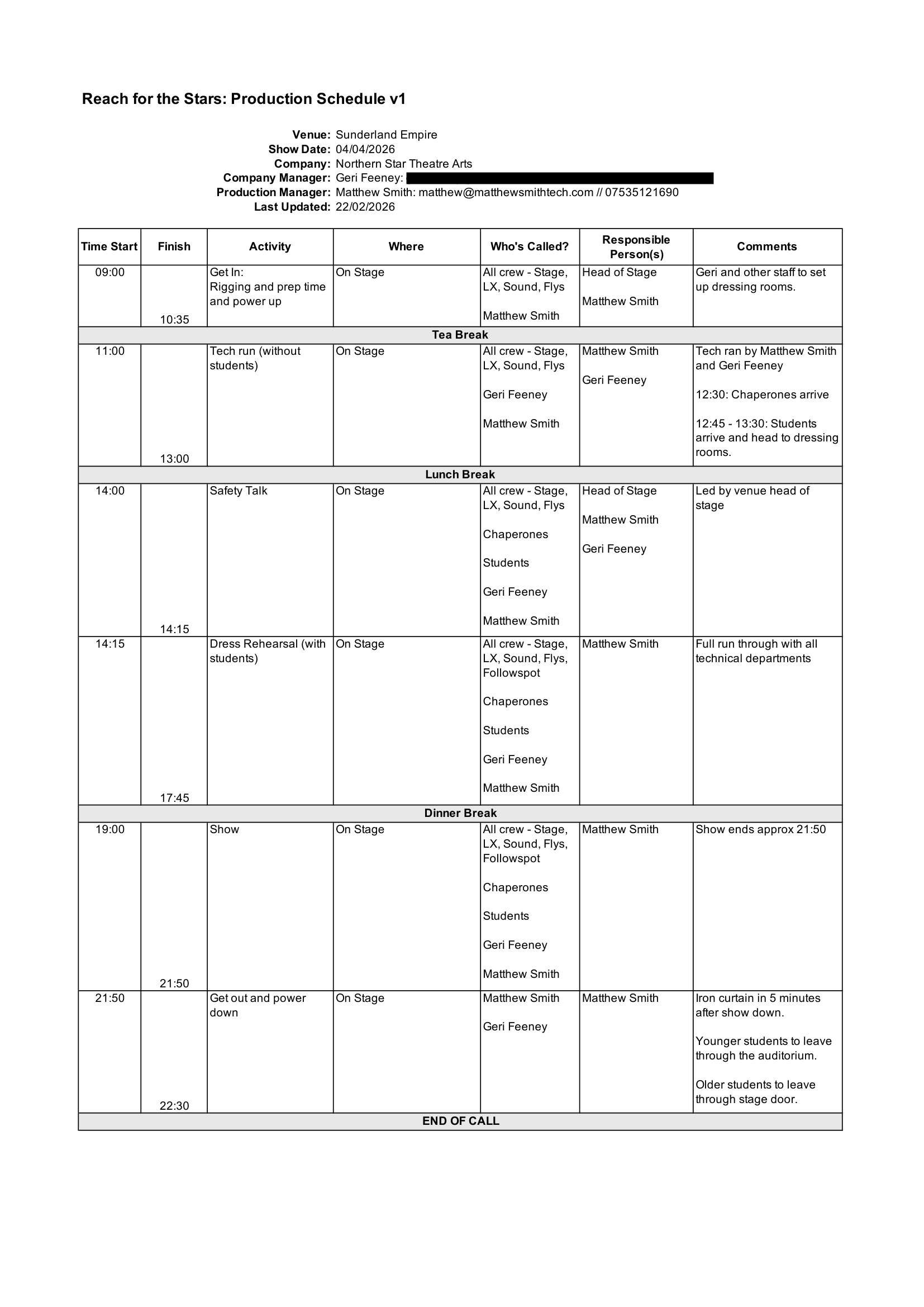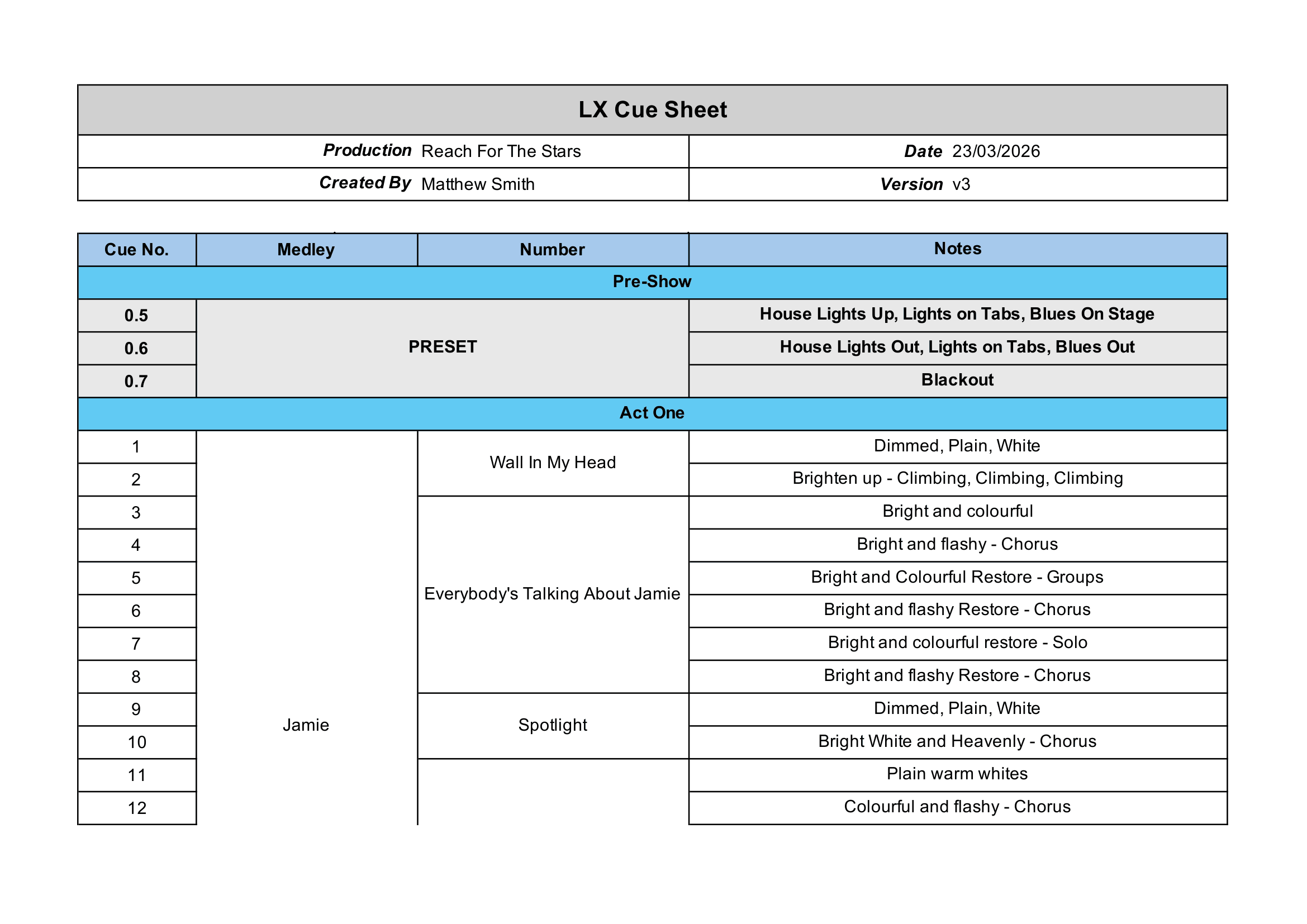 Working as a Stage Manager Matthew specialises in running efficient rehearsals, calling accurate cue sequences, maintaining detailed prompt books, and coordinating backstage teams to ensure every performance runs seamlessly. He is known for clear communication, strong leadership, and the ability to problem-solve under pressure in fast-paced live environments.